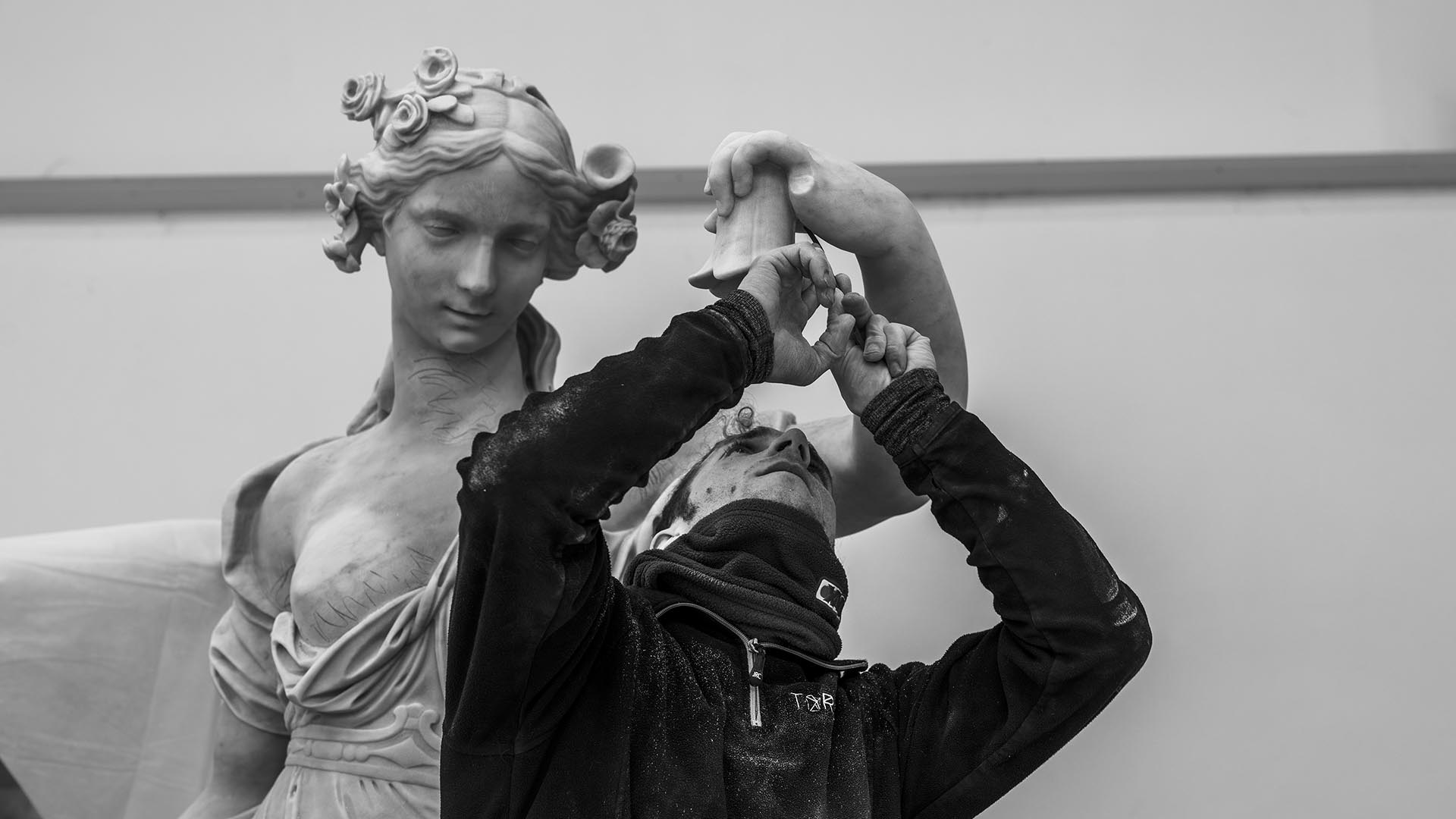 Realizzata in marmo, la nuova Primavera nasce da un processo che integra scansione tridimensionale, modellazione digitale, fresatura robotica e finitura manuale, in un dialogo continuo tra innovazione e tradizione.